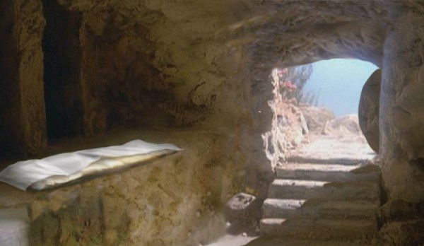في يَوْمِ الأَحَد، جَاءَتْ مَرْيَمُ المَجْدَلِيَّةُ إِلى القَبْرِ بَاكِرًا، وكَانَ بَعْدُ ظَلام، فَرَأَتِ الحَجَرَ مَرْفُوعًا عَنِ القَبْر