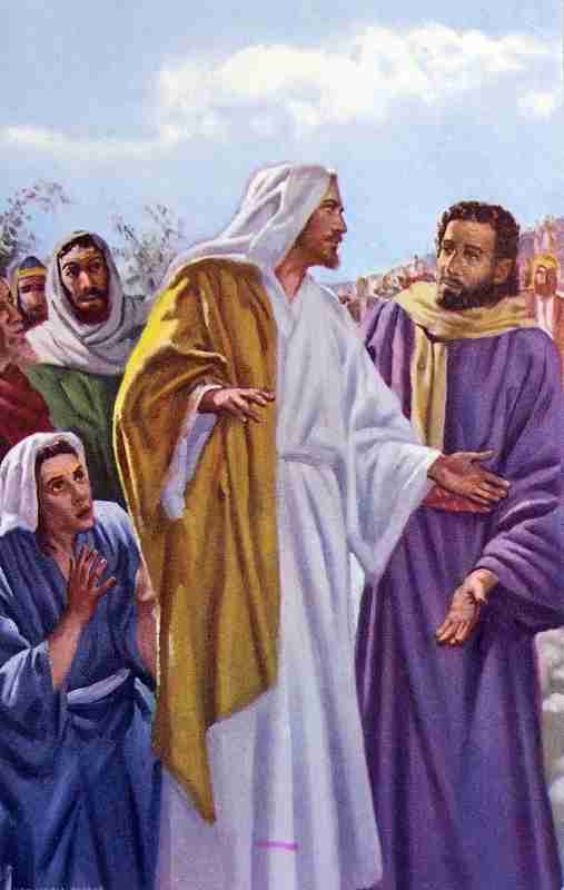 فلم يُجِبها بكلمة. ودنا تلاميذه فأخذوا يتوسَّلونَ إليه قائلين: “إصرِفْها، فإنّها تصرُخ في إثرِنا